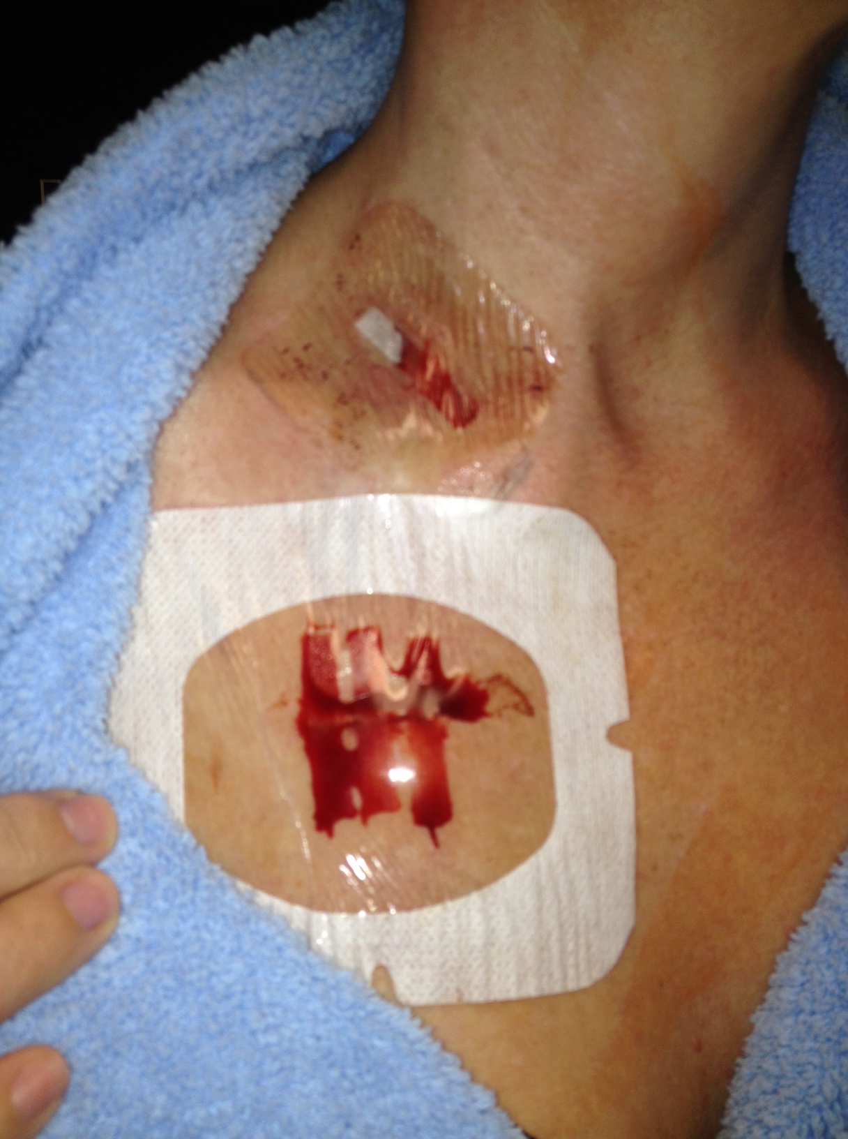 This is a photo of my port placement today…. before my friends so wonderfully offered to help me clean it up… but the other photos don’t have both incisions in the photo…
