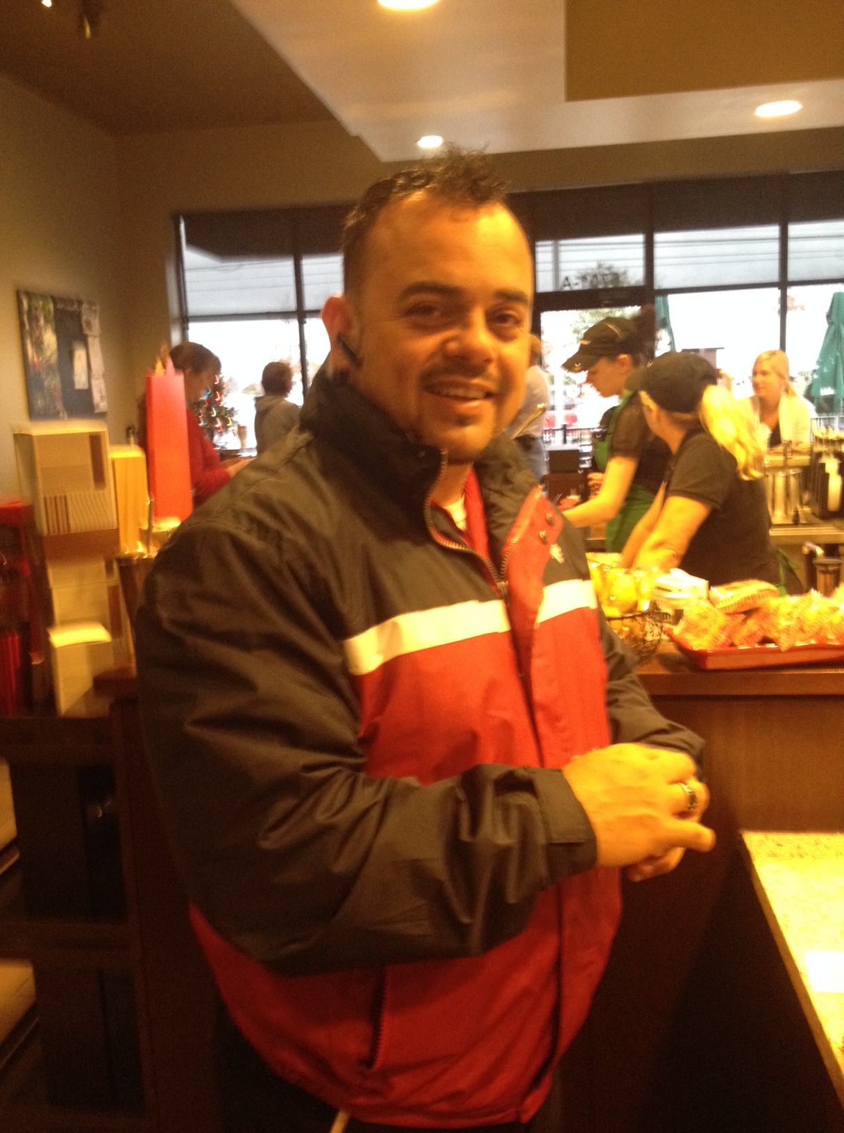 Then I wanted to talk a bit about my experience at Starbucks the other day…. I walked in, with my shaved head…. and went to use my $25 gift card that the Woods family bought…. and wanted to treat Bri to a coffee…. So I went to the counter and this man said… Ladies first…. and then he said “Nice haircut”…. it was very sweet…. So I order and I’m standing there, waiting in line….to get my drinks…. and he comes up to me and says…. “Those danishes are the best. I’d love to buy you one…. please let me buy it for you.” He knew I was married, he commented about my husband…So, I let him…. I didn’t have the heart to tell him, I am not eating that kind of stuff…. so I let Brianna eat it… well neither of us really ate it…. but it was just a kind gesture…. so I asked him if I could take his picture…. I’m sure he totally took it the wrong way because he made a point to come back into Starbucks and give me his card…. lol This bald thing has been interesting!