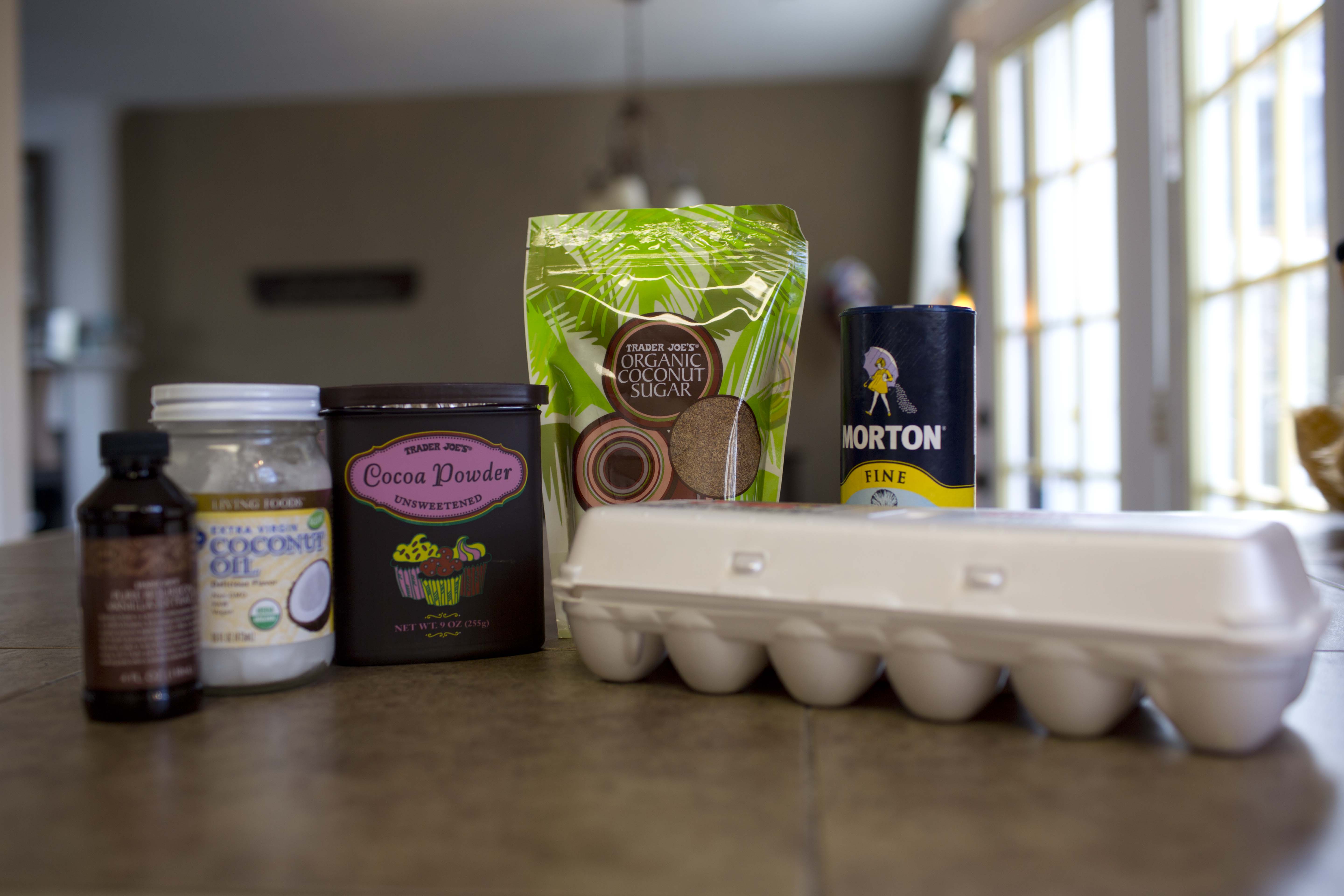 Pre heat the oven to 350 degrees. Mix dry ingredients together. Add eggs one at a time until combined. Then Add the melted coconut oil and vanilla extract. Mix well and pour into a greased 8×8 inch pan. Bake brownies for 15-20 minutes or until a tooth pick inserted into the middle of the brownies comes out clean.